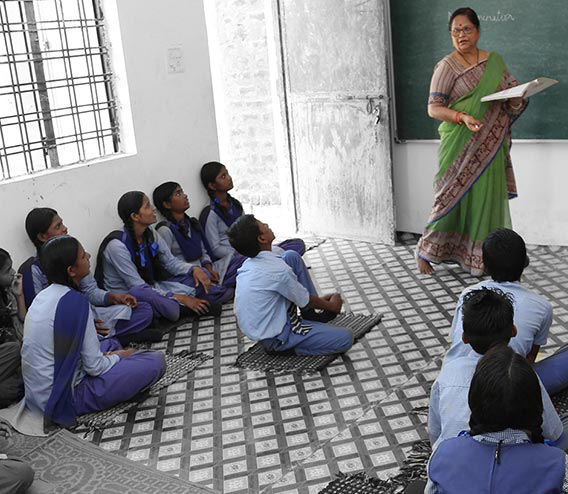Classes begin. Kavita asks the children if they need any clarifications on what they learnt in school the previous day or have questions on the homework they had to complete. Child by child, she answers their queries, provides clarification and help with homework. She also checks whether all students have completed their homework.